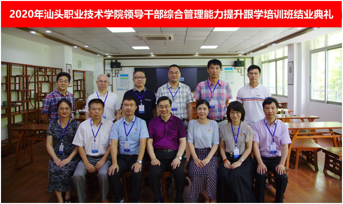 我校为了更好落实《广东省教育厅关于实施一流高职院校结对帮扶计划的通知》的要求,于2020年6月21日至7月21日在广州校区为我校结对帮扶学校汕头职业技术学院的12位领导干部开展为期1个月的综合管理能力提升跟学培训。培训班由我校党委办公室主办、马克思主义学院承办、继续教育学院负责后勤服务工作,并由我校校长办公室等11个职能部门负责跟岗对接工作。
