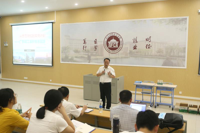 9月1日下午,学校副校长廖俊杰到广东财贸职业学院清远校区为新教师培训作专题讲座,参加讲座的学校领导、管理干部和新教师130多人。专题讲座为“从示范院校到双高计划——广东轻工高职教育实践”,廖俊杰副校长结合广东轻工职业技术学院的实践历程,为广东财贸学院的新教师和管理干部系统解读了高等职业教育基本知识、职业教育发展现状、未来发展趋势和当前有关高等职业教育政策,同时从教师的使命担当角度对新教师提出了要求和建议。讲座结束后,廖俊杰副校长与广东财贸职业学院临时党委书记袁本新等领导就对口帮扶工作进行深入交流。帮扶干部魏国平参加了此次培训和交流。