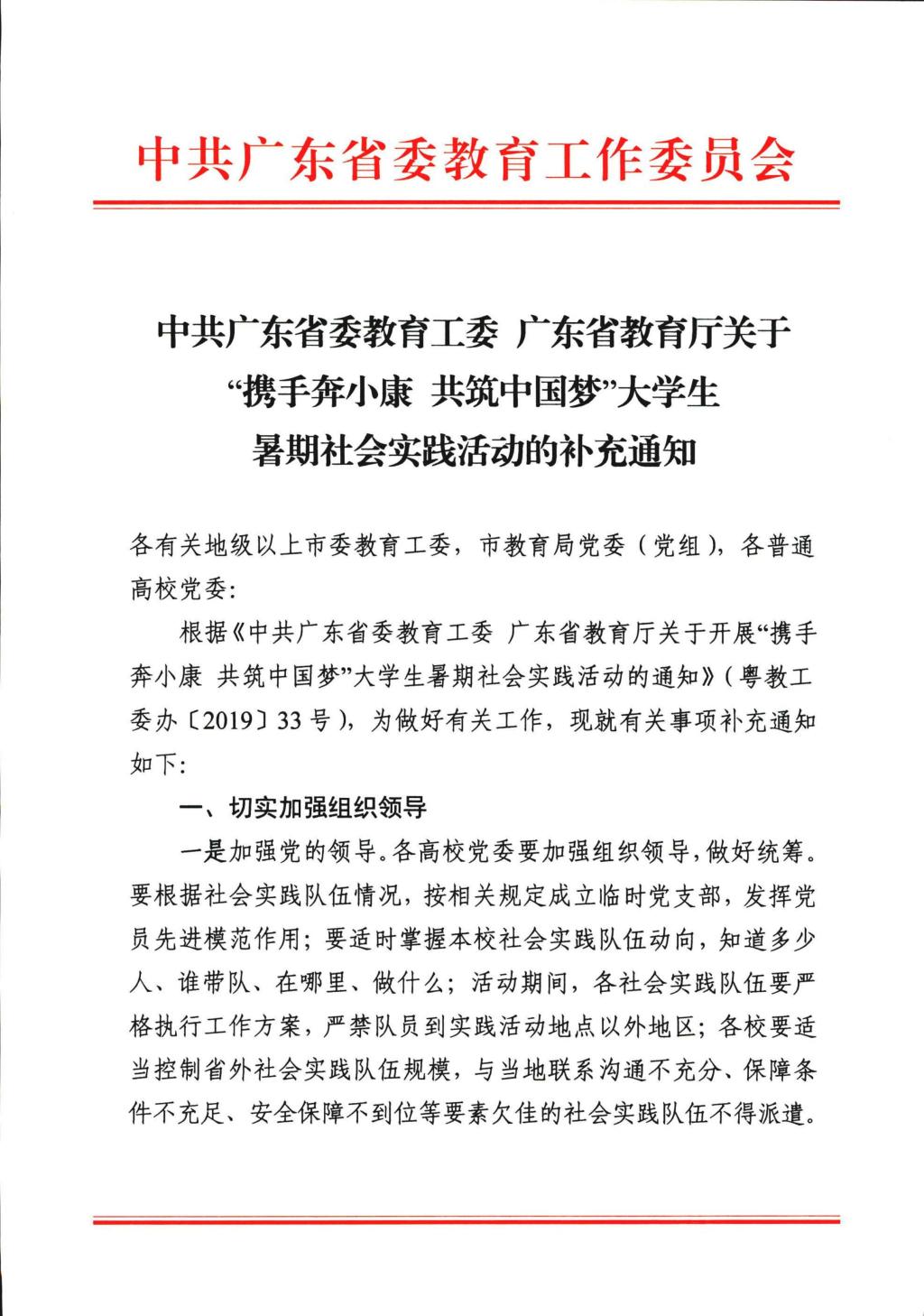 中共广东省委教育工委 广东省教育厅关于“携手奔小康 共筑中国梦”大学生暑期社会实践活动的补充通知